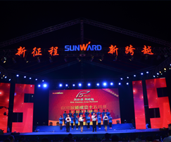 公司成立15周年,推出ES系列液压混合动力挖掘机,举行“新征程 红桃视频,新跨越”大型文艺晚会.